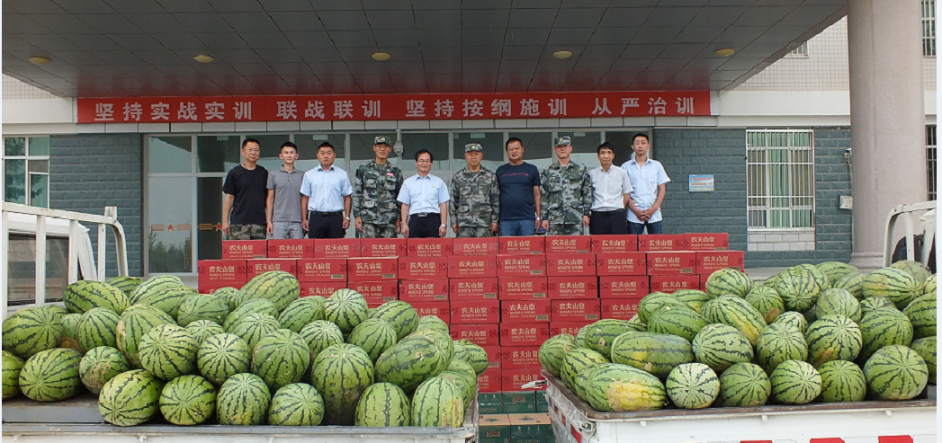 7月31日上午,在“八一”建軍節(jié)來臨之際,庫爾勒銀泉供水有限公司領(lǐng)導(dǎo)一行來到解放軍69089部隊(duì)慰問,為駐地部隊(duì)和官兵送上西瓜、礦泉水,并向他們致以美好的問候和節(jié)日的祝福。