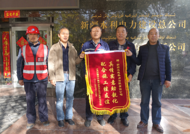 10月25日上午,中建新疆建工(集團)第四分公司沙區靚化項目部將一面印有“真情實意助靚化 配合施工續友誼”燙金大字的錦旗送到建設總公司所屬通達熱力公司,感謝通達熱力公司各部門在此次政府靚化工程中,積極加強配合力度,及時搞好靚化的配套工作,竭盡所能為靚化施工隊伍提供住宿便利、各節假日的出入便利等相關幫助。